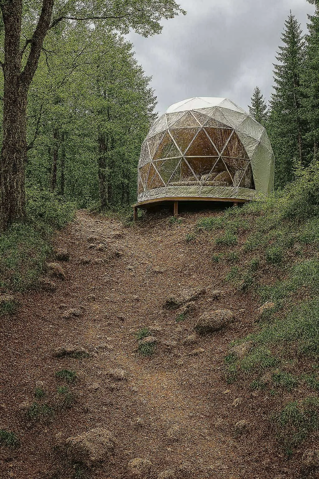 それから、最後の大山を登っているときに、100m位の急登を登りきると全く同じ風景が現れて、また全く同じに見える急登があるという無限ループに陥ったのです。毎回の坂の上には、綺麗なグランピング施設や真っ黒に黒光りする象のアートオブジェが置いてあったり...でも登りきるとただの木と影と葉っぱだったりの繰り返しでした。